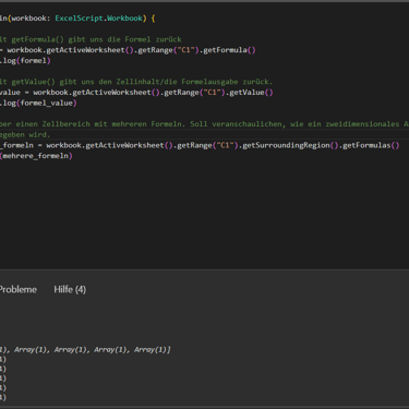 Eine häufige Anforderung ist die Frage, ob eine Zelle eine Formel enthält oder nicht. Office Script stellt dafür die Methoden .getFormula() (für eine einzelne Zelle) und .getFormulas() (für einen Bereich) bereit. Klingt einfach aber es gibt eine wichtige Besonderheit, die man kennen muss.