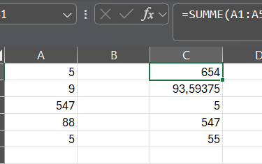 Das ist entscheidend: Wer den Ergebniswert erwartet, wird überrascht, weil nur der reine Formeltext geliefert wird. Anbei zur Veranschaulichung, wie die Werte zurückgegeben werden. Zuerst zeige ich die Beispieldaten. Spalte A hat nur Zahlen. Spalte C hat dagegen die Formeln enthalten. Bis auf C5. Hier habe ich einfach nur "55" eingegeben, um zu veranschaulichen, das auch diese Zahl bei getFormulas() eingelesen wird.