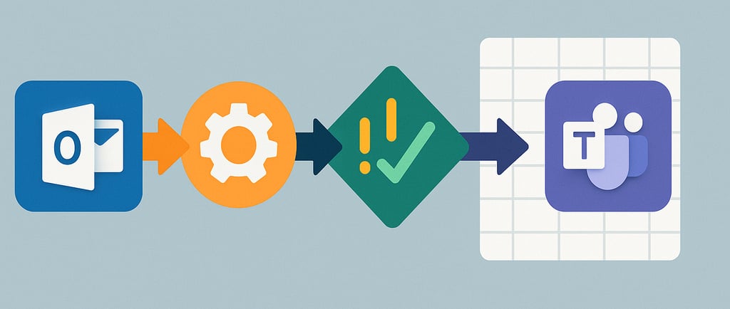 In diesem Beitrag zeige ich einen Power-Automate-Flow aus meiner Praxis. Er überwacht eingehende Outlook-Mails und erstellt abhängig vom Inhalt automatisch eine Teamsnachricht.