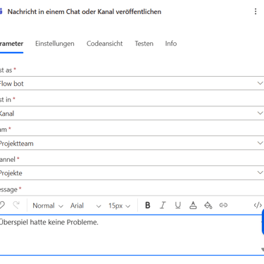 Das Ziel: Eine Teamsnachricht, die mir sofort sagt, ob das Überspiel erfolgreich war oder nicht.